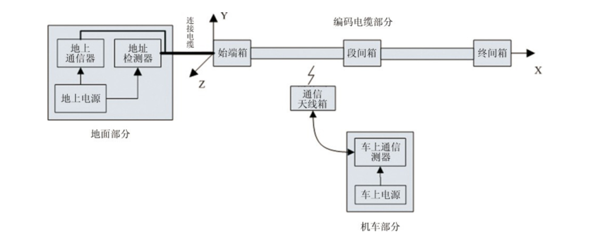 地上位置檢測與通信系統是利用電磁感應原理來實現位置檢測和數據通信的。它由地面部分、編碼電纜部分、車上部分組成。其中地面部分由地上通信器、地址檢測器、地上電源組成;編碼電纜部分由始端箱、編碼電纜、段間箱、終端箱組成;車上部分由車上電源、車上通信器、天線箱組成。