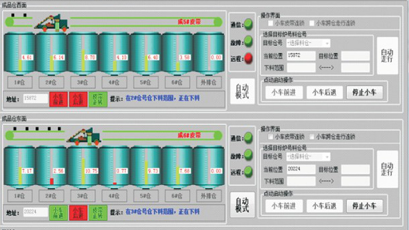 Each actual position of the conveyor car in the material yard has a unique address in the system which is one-to-one correspondence, the accuracy is 2mm.