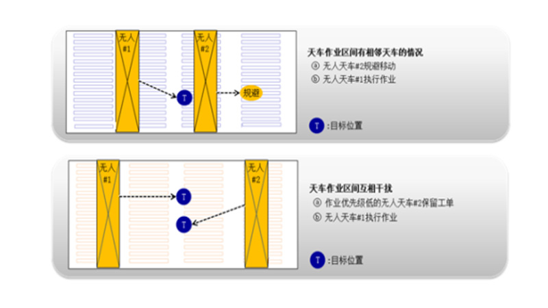 無人天車系統支持同跨多臺天車同時作業,通過智能調度可自動生成物料的最佳存儲貨位和吊取貨位、調度最合理的天車執行任務,并協調調度庫內其他轉運工具過跨車、汽車等協調作業: